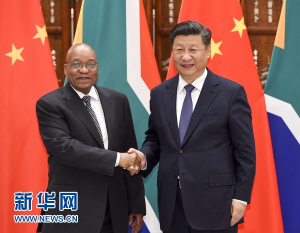 9月3日,國家主席習(xí)近平在杭州會見來華出席二十國集團(tuán)領(lǐng)導(dǎo)人杭州峰會的南非總統(tǒng)祖馬。 新華社記者 李學(xué)仁 攝