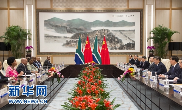 祖馬表示,南中友誼源遠(yuǎn)流長,南非珍視南中全面戰(zhàn)略伙伴關(guān)系。兩國關(guān)系正不斷深化,各領(lǐng)域合作迅速發(fā)展。南方贊賞中方為非洲發(fā)展所做的貢獻(xiàn),贊賞中方引領(lǐng)二十國集團(tuán)領(lǐng)導(dǎo)人杭州峰會聚焦聯(lián)動(dòng)發(fā)展、聯(lián)合國2030年可持續(xù)發(fā)展議程等發(fā)展議題,并特別關(guān)注非洲發(fā)展,愿密切同中方在聯(lián)合國、二十國集團(tuán)、金磚國家、中非合作論壇等多邊框架內(nèi)合作。