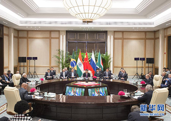 9月4日,金磚國(guó)家領(lǐng)導(dǎo)人非正式會(huì)晤在杭州舉行,國(guó)家主席習(xí)近平、印度總理莫迪、南非總統(tǒng)祖馬、巴西總統(tǒng)特梅爾、俄羅斯總統(tǒng)普京出席。新華社記者李學(xué)仁攝