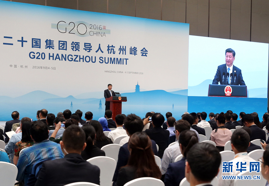 9月5日,二十國(guó)集團(tuán)領(lǐng)導(dǎo)人第十一次峰會(huì)閉幕后,國(guó)家主席習(xí)近平在杭州國(guó)際博覽中心會(huì)見(jiàn)中外記者。 新華社記者姚大偉攝