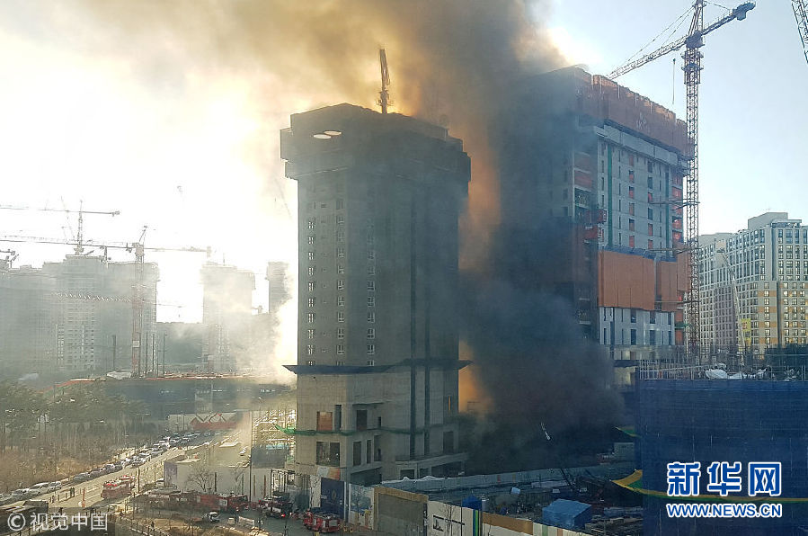 韓國(guó)水原市建筑工地發(fā)生火災(zāi) 現(xiàn)場(chǎng)濃煙滾滾