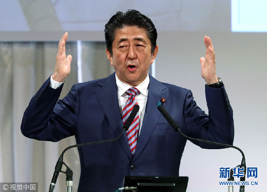 當?shù)貢r間2018年3月25日,日本東京,日本首相安倍晉三出席自民黨年會。(圖片來源:視覺中國)