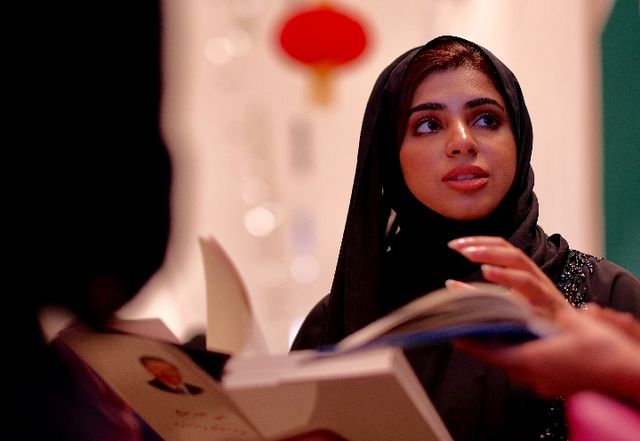 阿聯(lián)酋讀者在中國(guó)圖書展銷周期間相互交流。新華社記者 鄭開君攝
