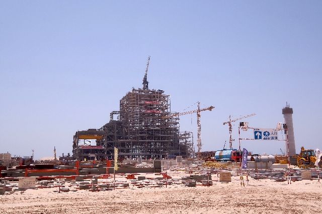 從首都阿布扎比驅(qū)車1個(gè)多小時(shí),記者來(lái)到迪拜以南的海岸邊。一片片零星植被覆蓋的沙漠中,占地118.5公頃的哈斯彥清潔燃煤電站令人眼前一亮。