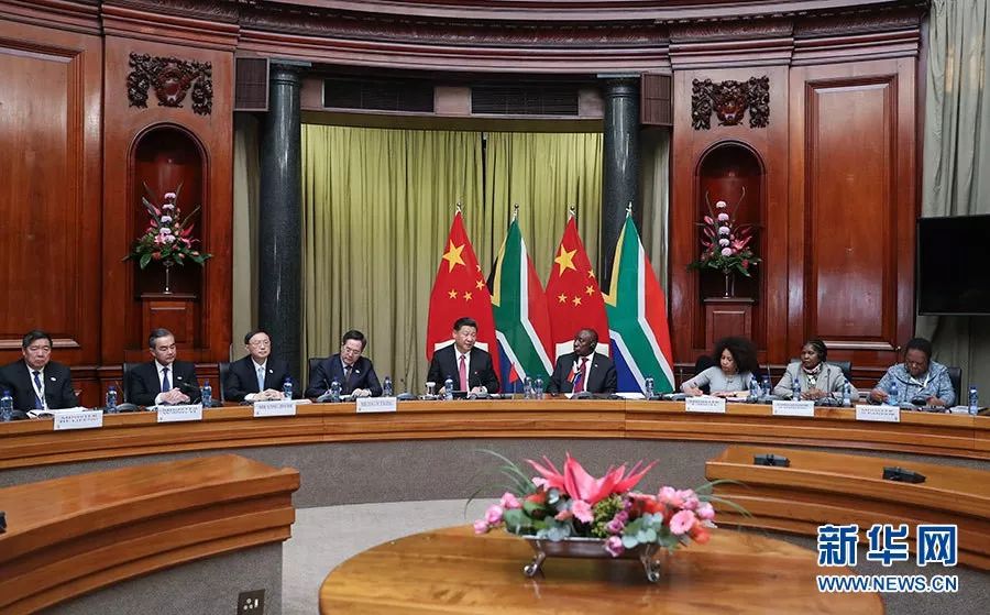 ▲7月24日,國(guó)家主席習(xí)近平在比勒陀利亞同南非總統(tǒng)拉馬福薩舉行會(huì)談。 (新華社)
