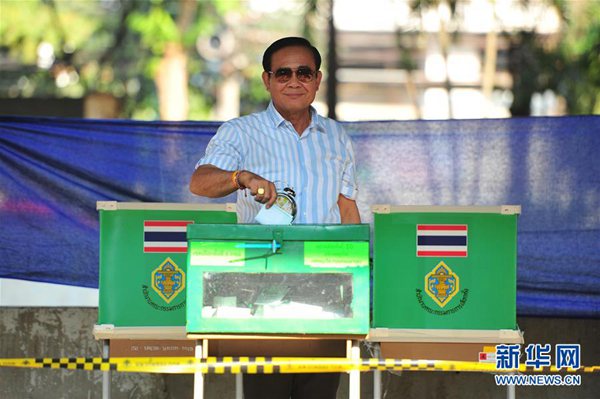 泰國(guó)總理巴育8時(shí)左右前往曼谷的一處投票站,排隊(duì)等候投票。他對(duì)媒體說,希望泰國(guó)人民參與大選投票,合理行使選舉權(quán),團(tuán)結(jié)一致,共同解決國(guó)家所面臨的問題。