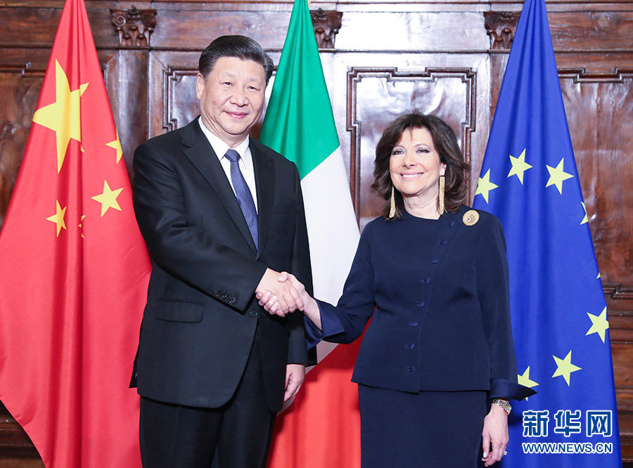 3月22日,國家主席習(xí)近平在羅馬會見意大利參議長卡塞拉蒂。(新華社記者姚大偉攝)