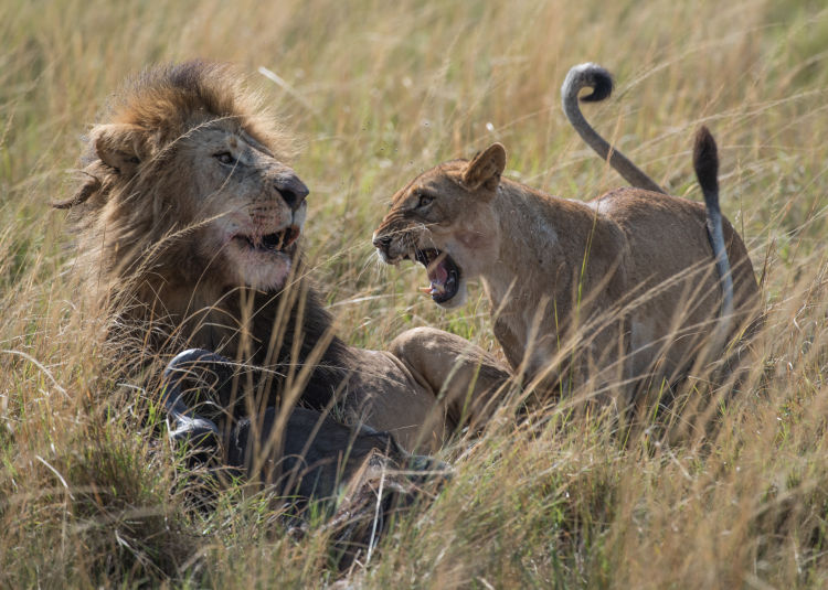 同一個獅群的雄獅之間很少會發(fā)生肢體沖突。相反,它們之間非常默契并相互依賴,不僅共同保護獅群免受斑鬣狗、大象和野牛的騷擾,而且共同抵御其他獅群或外來流浪獅的入侵。