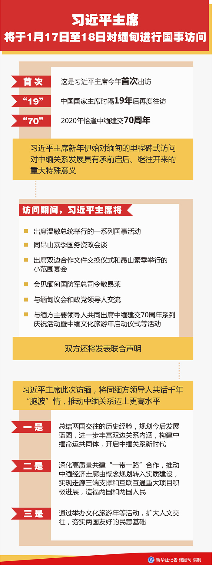羅照輝表示,應(yīng)溫敏總統(tǒng)邀請(qǐng),習(xí)近平主席將于1月17日至18日對(duì)緬甸進(jìn)行國(guó)事訪(fǎng)問(wèn)。這是習(xí)近平主席今年首次出訪(fǎng),是中國(guó)國(guó)家主席時(shí)隔19年后再度往訪(fǎng),又恰逢中緬建交70周年,對(duì)中緬關(guān)系發(fā)展具有承前啟后、繼往開(kāi)來(lái)的重大特殊意義。緬甸是中國(guó)友好鄰邦。當(dāng)前,兩國(guó)政治上高度互信,經(jīng)濟(jì)上深度合作,國(guó)際地區(qū)問(wèn)題上密切配合,“胞波”情誼歷久彌新,民間往來(lái)高位運(yùn)行。建交70年來(lái),中緬關(guān)系在互尊、互信、互助的基礎(chǔ)上不斷發(fā)展,樹(shù)立了大小國(guó)家間和睦相處、合作共贏的典范。中方堅(jiān)持不干涉緬內(nèi)政,堅(jiān)定支持緬甸維護(hù)國(guó)家尊嚴(yán)和合法權(quán)益。在緬甸國(guó)內(nèi)和平和解問(wèn)題上,中方勸和促談,發(fā)揮建設(shè)性作用。緬方在涉及臺(tái)灣、西藏、新疆問(wèn)題上一直堅(jiān)定支持中方。緬甸積極響應(yīng)和參與“一帶一路”合作倡議。中緬經(jīng)濟(jì)走廊及大項(xiàng)目合作帶動(dòng)了緬方沿線(xiàn)就業(yè)和經(jīng)濟(jì)發(fā)展,極大提升了當(dāng)?shù)厝嗣裆钏?。中緬?jiān)持踐行和平共處五項(xiàng)原則,堅(jiān)持國(guó)際關(guān)系基本準(zhǔn)則,支持多邊主義、維護(hù)自由貿(mào)易,共同為推動(dòng)建立公正合理的新型國(guó)際關(guān)系作出貢獻(xiàn)。雙方在聯(lián)合國(guó)、東亞合作等場(chǎng)合相互支持,在建立中國(guó)-東盟自貿(mào)區(qū),區(qū)域全面經(jīng)濟(jì)伙伴關(guān)系、“南海行為準(zhǔn)則”磋商等方面密切協(xié)調(diào)配合。