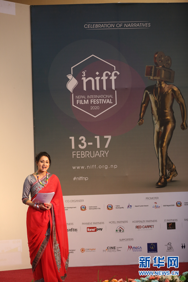 2月17日,尼泊爾加德滿都市政大廳,優(yōu)雅美麗的主持人在第三屆尼泊爾國際電影節(jié)在加德滿都閉幕儀式上。本屆電影節(jié)2月13日開始,一共有來自40個國家和地區(qū)的80部影片入選,其中中國和哈薩克斯坦聯(lián)合拍攝的《音樂家》作為開幕電影,備受關(guān)注。記者 唐薇 攝