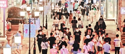 8月3日晚,楚河漢街人氣旺盛,客流如織。記者李子云 攝