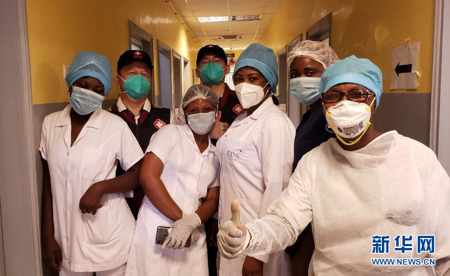 5月26日,中國抗疫醫(yī)療專家組在剛果(布)首都布拉柴維爾指導(dǎo)新冠肺炎病房建設(shè)時(shí),與當(dāng)?shù)匾痪€醫(yī)務(wù)人員合影。新華社發(fā)
