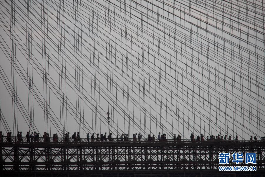6月6日,抗議警察暴力執(zhí)法導(dǎo)致喬治·弗洛伊德死亡的示威人群走過美國紐約布魯克林大橋。新華社發(fā)(郭克攝)