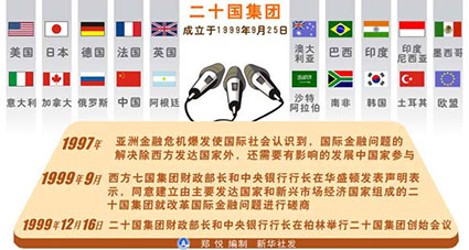 2008年11月,在國際金融危機沖擊的背景下,二十國集團首次峰會在美國首都華盛頓舉行。會議就金融危機的起源、加強合作反對貿(mào)易保護主義、支持經(jīng)濟增長等問題達成共識,并就應(yīng)對世界面臨的金融和經(jīng)濟問題的措施達成一項行動計劃,其中包括提高金融市場透明度和完善問責(zé)制、加強管理、促進金融市場完整性、強化國際合作以及改革國際金融機構(gòu)等。