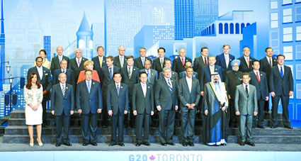 2010年6月,二十國集團第四次峰會在加拿大多倫多舉行。多倫多峰會確定了增長的主調(diào),信守并履行了“強勁、可持續(xù)和平衡增長框架”和金融監(jiān)管改革等主要日程,在發(fā)達國家削減財政赤字、國際金融機構(gòu)治理改革、反對貿(mào)易保護主義等問題上提出了一些具體的時間表,并強調(diào)了二十國集團的首要任務(wù)是確保和加強經(jīng)濟復(fù)蘇。
